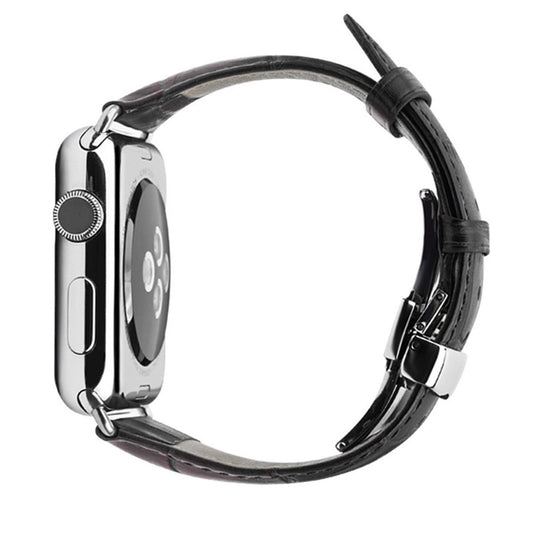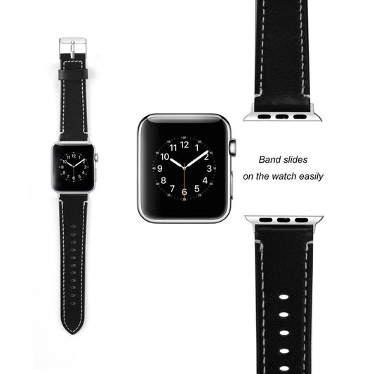 Leder Armband für Apple Watch 49/45/44/42mm Band Series Ultra/8/7/6/SE/5 schwarz