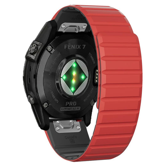 Armband für Garmin Fenix 5/5X/6X/7X Silikon Ersatzband magnetisch Schwarz-Rot