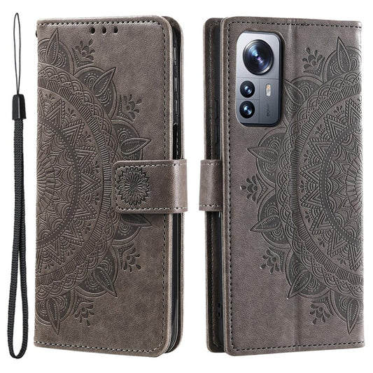 Hülle für Xiaomi 12 Pro Handyhülle Flip Case Cover Tasche Etui Mandala Grau