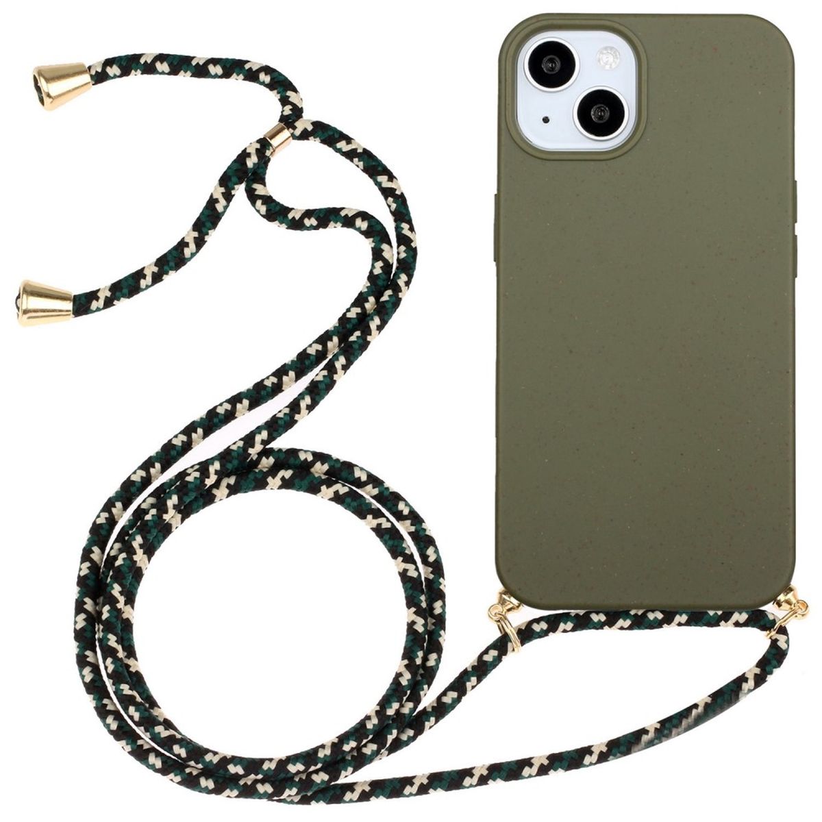 Hülle für Apple iPhone 14 Handy Silikon Case Handykette Cover Band Oliv Grün