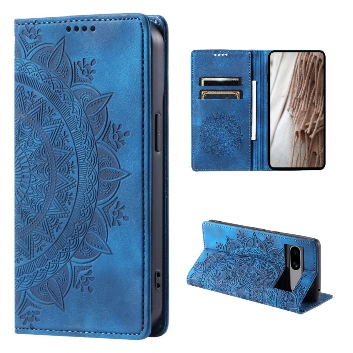 Hülle für Google Pixel 8a Handyhülle Flip Case Cover Tasche Etui Mandala Blau