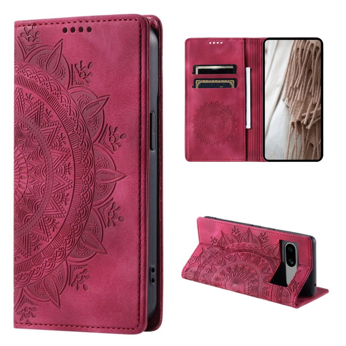 Hülle für Google Pixel 8a Handyhülle Flip Case Cover Tasche Etui Mandala Rot