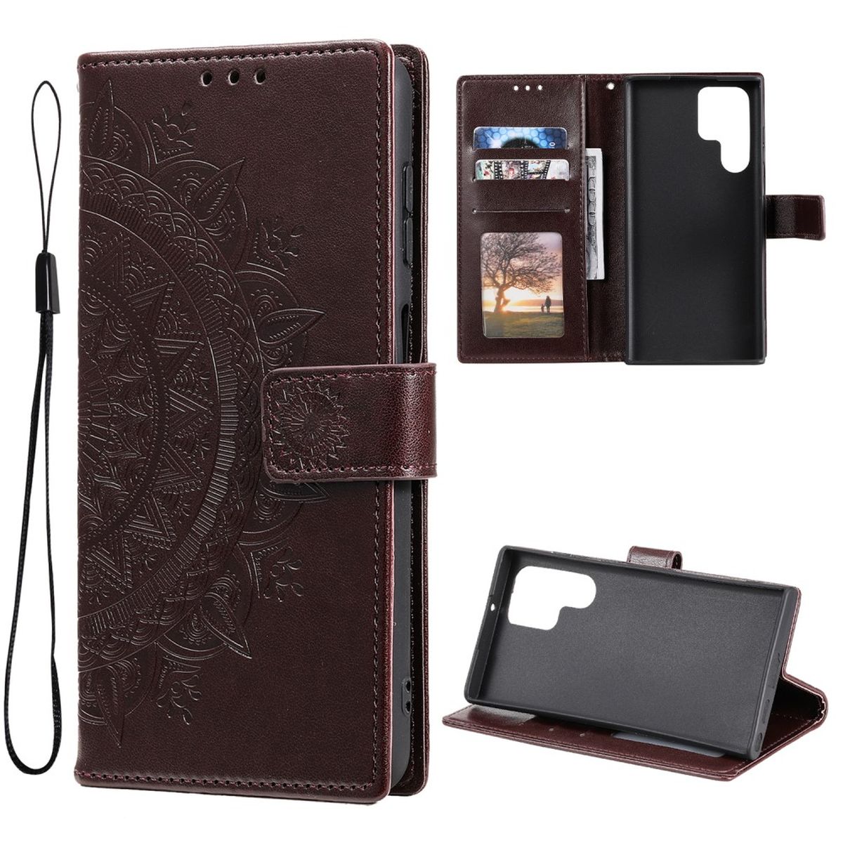 Hülle für Samsung Galaxy S22 Ultra Handyhülle Flip Case Cover Etui Mandala Braun