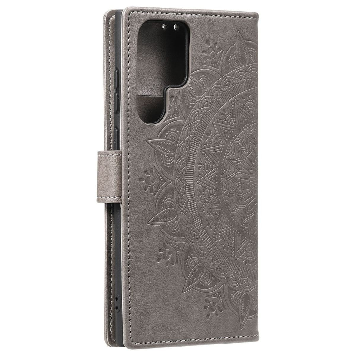 Hülle für Samsung Galaxy S22 Ultra Handyhülle Flip Case Cover Etui Mandala Grau
