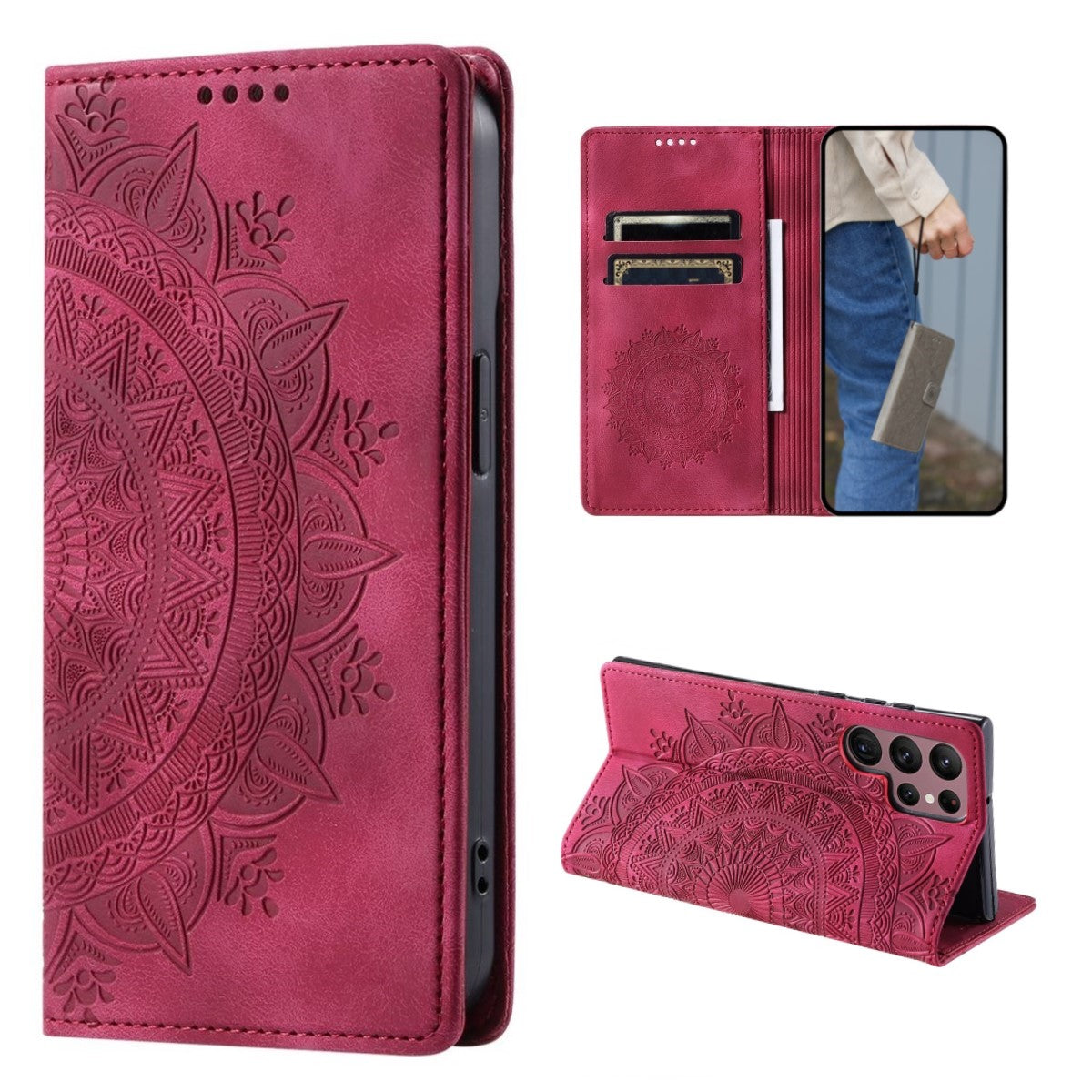 Hülle für Samsung Galaxy S24 Ultra Handyhülle Flip Case Cover Etui Mandala Rot