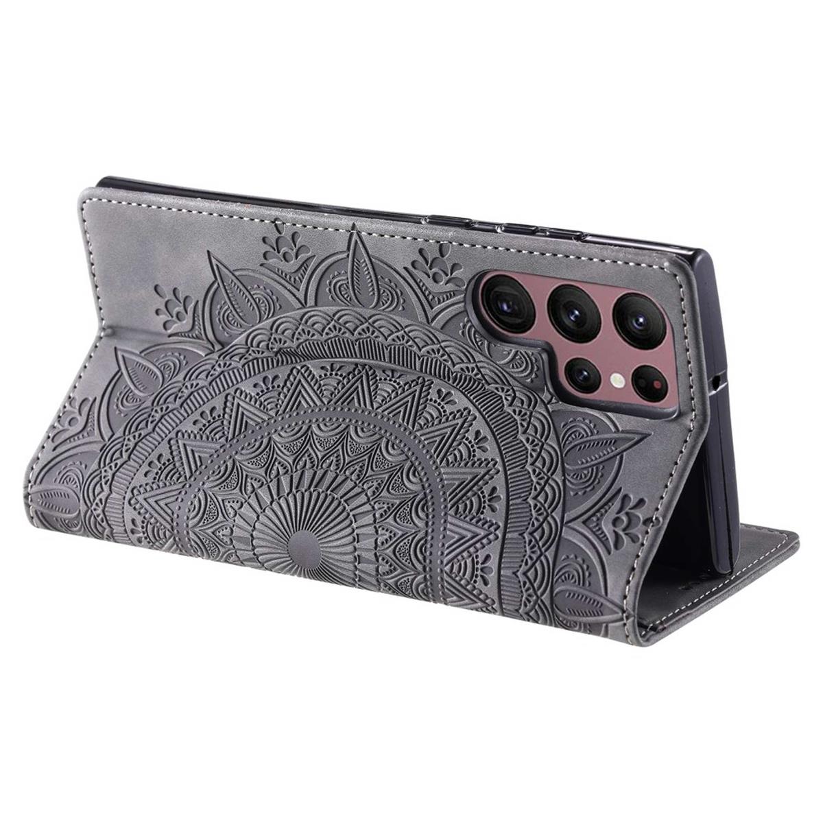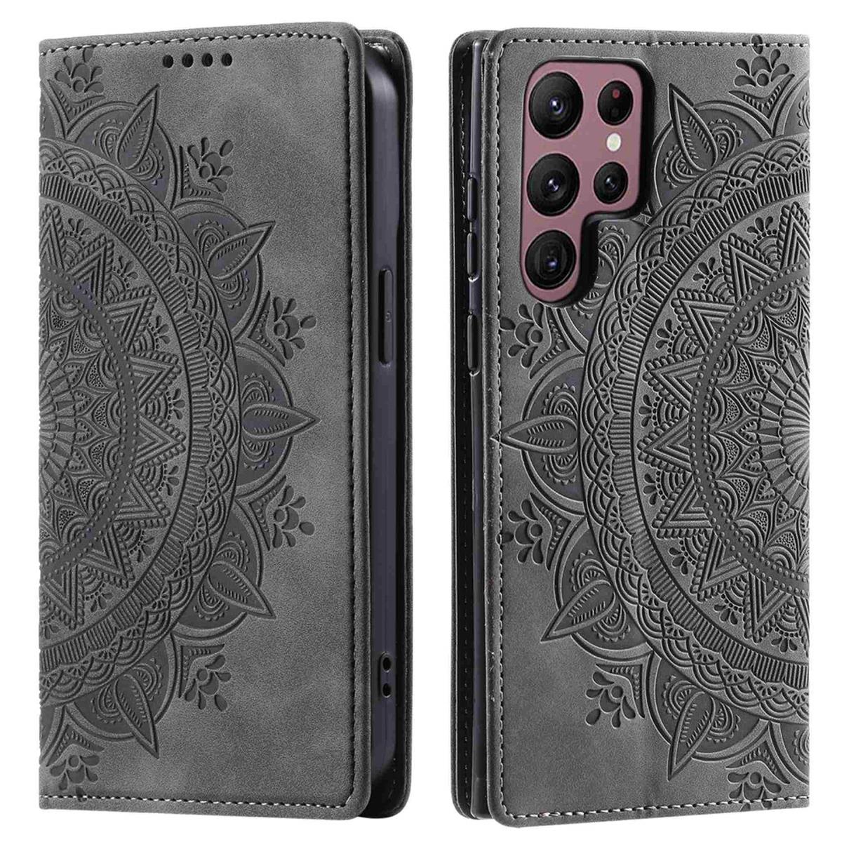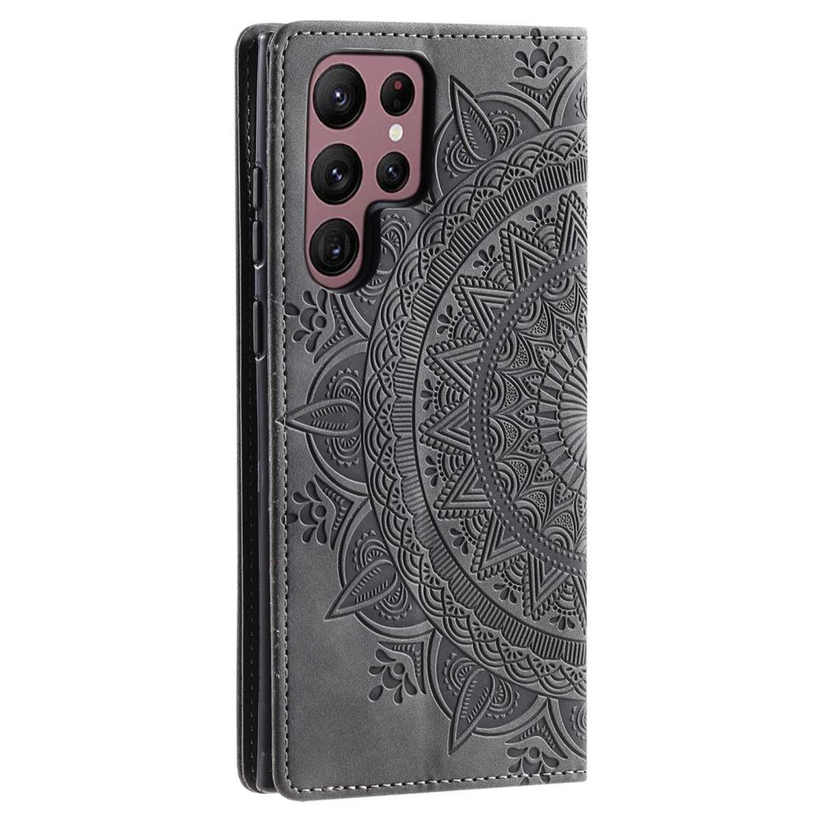 Hülle für Samsung Galaxy S25 Ultra Handyhülle Flip Case Cover Tasche Mandala Grau