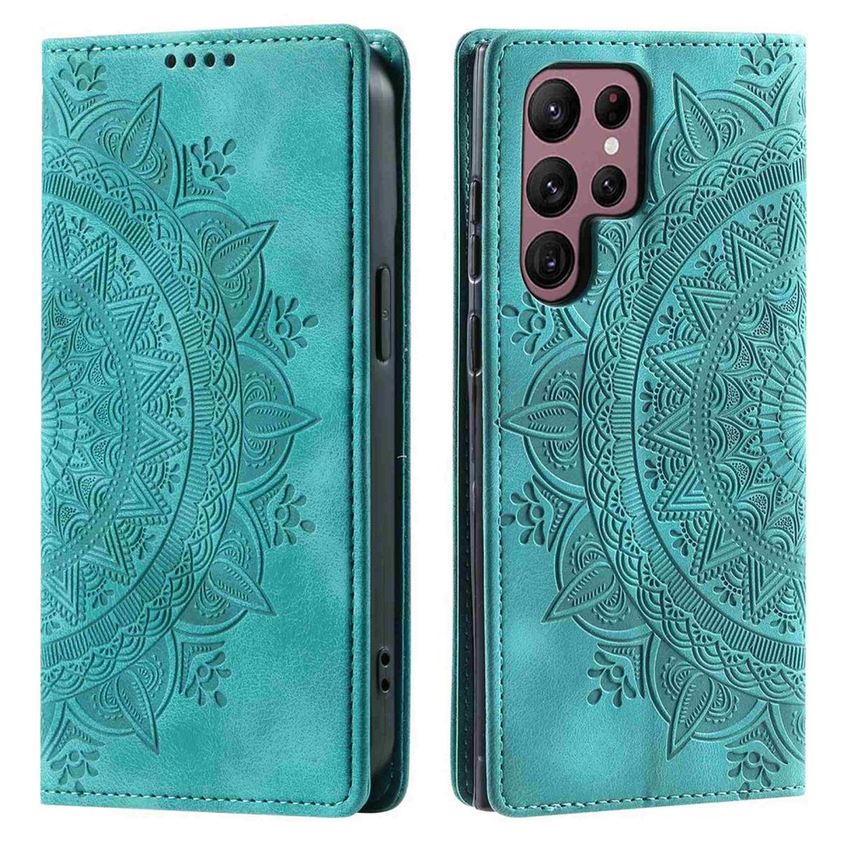 Hülle für Samsung Galaxy S25 Ultra Handyhülle Flip Case Cover Tasche Mandala Grün